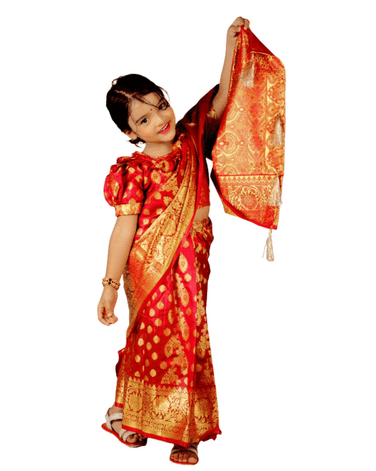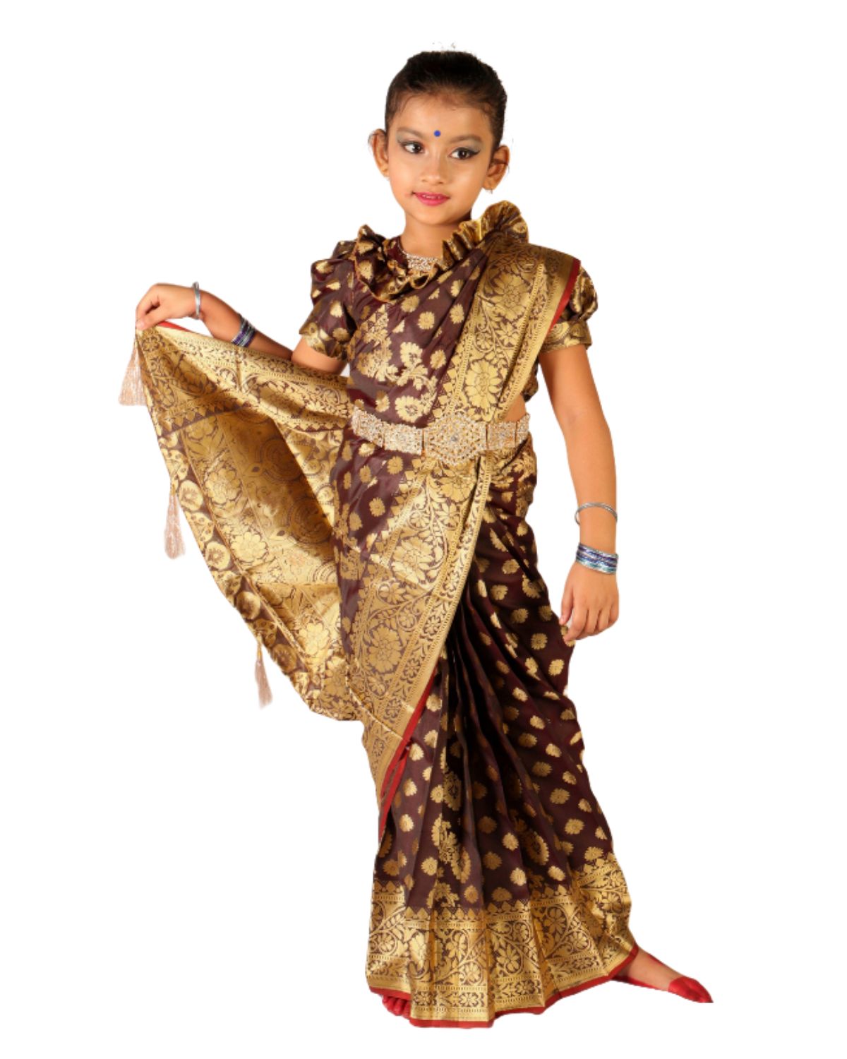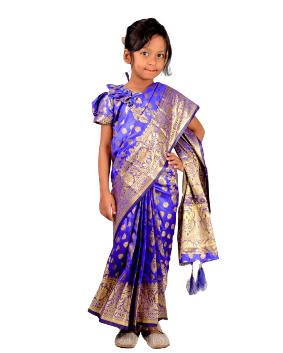 👗 শাড়ির কুচি সেলাই করে ফিক্সড করা এবং কোমরে ফিতা দেওয়া। খুলে যাওয়ার কোন ভয় নেই আর শাড়ির ইনার অনেক উন্নত মানের ভয়েল ফেব্রিক দেয়া আছে তাই বাচ্চাদের জন্যে হবে খুব আরামদায়ক।